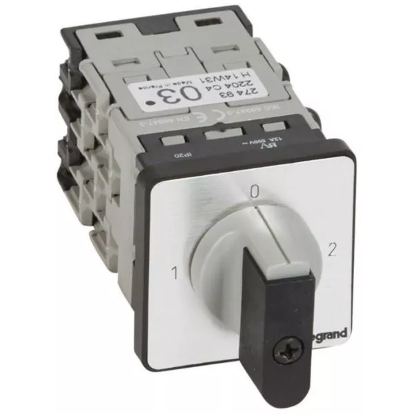 Commutateur à cames inverseur avec position arrêt 90° PR12 - 4P - 8 contacts - fixation par vis sur porte