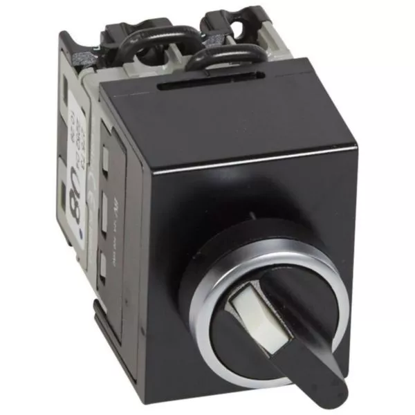 - Tête de commande à manette Ø22mm - 2 pôles - Gamme PR12 - Valeur maximum en AC21 : 16A - 4 contacts à ouverture positive et double coupure des pôles