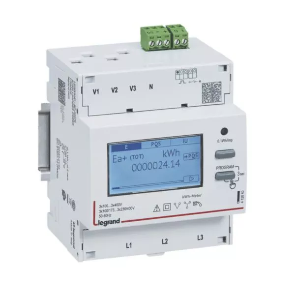 Compteur modulaire triphasé EMDX³ MID raccordement TI 5A - 4 modules - avec sortie à impulsions