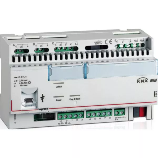 - Contrôleur modulaire BUS KNX multi-applications pour éclairage, volets roulants, contacteurs, moteurs et variation DALI