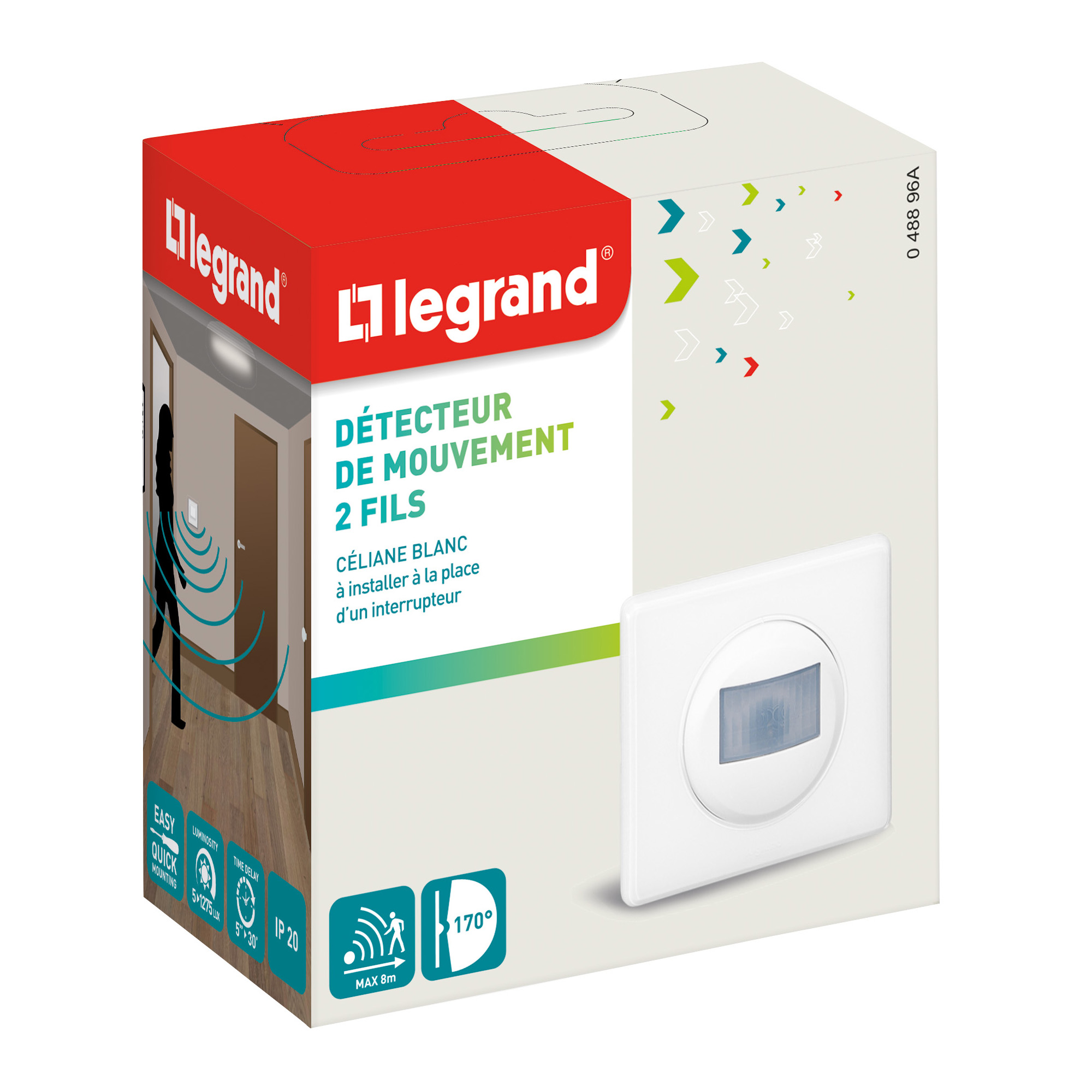 Détecteur mural de mouvement autonome ECO1 Céliane 2 fils sans neutre 100W LED - complet avec plaque blanche