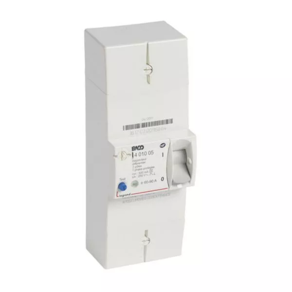 - Disjoncteur d'abonné Basse Tension BACO bipolaire 250V~ pour tarif à puissance limitée (tarif bleu) de 3kVA à 36kVA - Intensité nominale 90A
