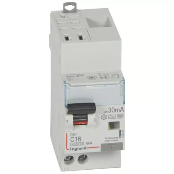 - Disjoncteur différentiel DX³ uni + neutre 230V~ pouvoir de coupure :