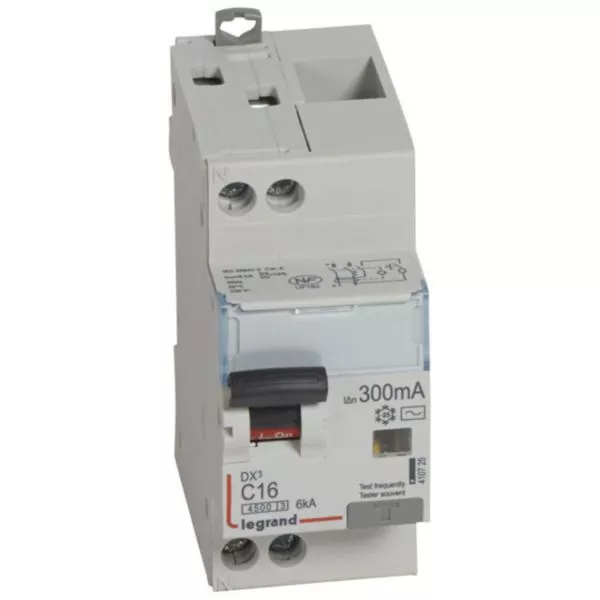 - Disjoncteur différentiel DX³ uni + neutre 230V~ pouvoir de coupure :
