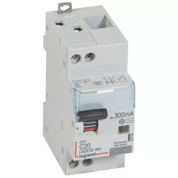 Disjoncteur différentiel DX³4500 arrivée haute et départ bas à vis U+N 230V~ - 20A typeAC 300mA - courbe C - 2 modules