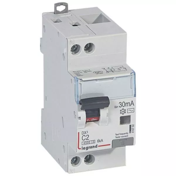- Disjoncteur différentiel DX³ uni + neutre 230V~ pouvoir de coupure :