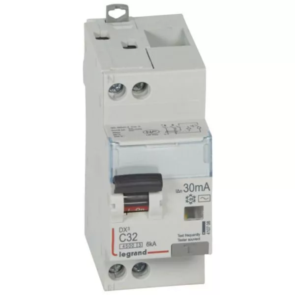Disjoncteur différentiel DX³4500 arrivée haute et départ bas à vis U+N 230V~ - 32A typeAC 30mA - courbe C - 2 modules