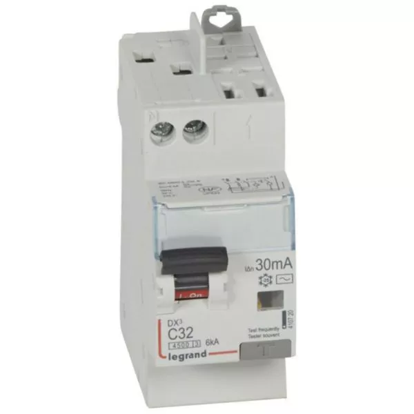 Disjoncteur différentiel DX³4500 arrivée haute vis et départ haut automatique U+N 230V~ - 32A typeAC 30mA - 2 modules