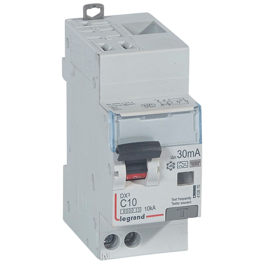- Disjoncteur différentiel monobloc DX³ uni + neutre 230V~ pouvoir de coupure :