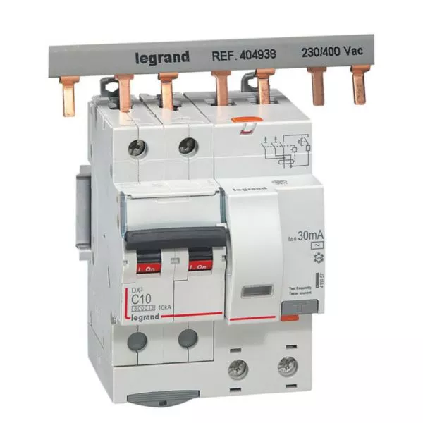 - Disjoncteur différentiel monobloc DX³ bipolaire 230V~ à 400V~ pouvoir de coupure :