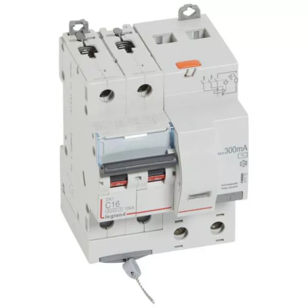 - Disjoncteur différentiel monobloc DX³ bipolaire 230V~ à 400V~ pouvoir de coupure :