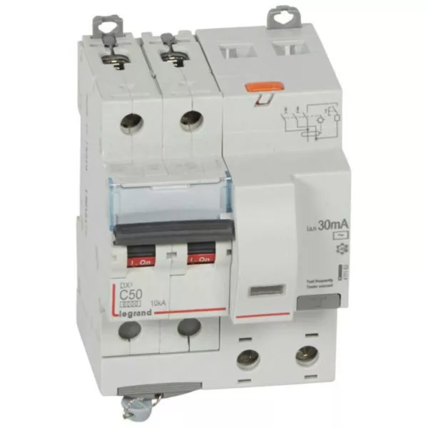 Disjoncteur différentiel monobloc DX³6000 10kA arrivée haute et départ bas à vis 2P 230V~ à 400V~ - 50A - typeAC 30mA