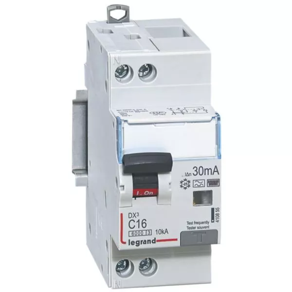 Disjoncteur différentiel monobloc DX³6000 10kA arrivée haute et départ bas à vis U+N 230V~ - 16A - typeF 30mA