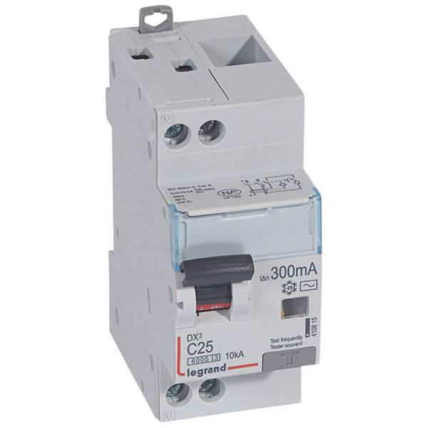 Disjoncteur différentiel monobloc DX³6000 10kA arrivée haute et départ bas à vis U+N 230V~ - 25A - typeAC 300mA