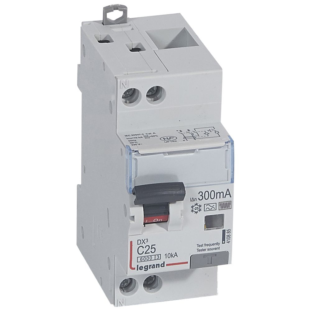 Disjoncteur différentiel monobloc DX³6000 10kA arrivée haute et départ bas à vis U+N 230V~ - 25A - typeF 300mA