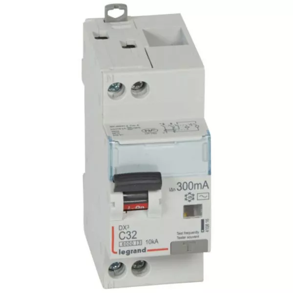 Disjoncteur différentiel monobloc DX³6000 10kA arrivée haute et départ bas à vis U+N 230V~ - 32A - typeAC 300mA