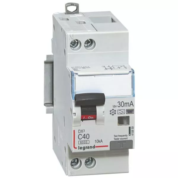 - Disjoncteur différentiel monobloc DX³ uni + neutre 230V~ pouvoir de coupure :