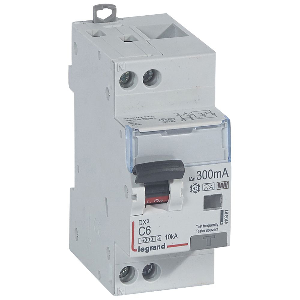 Disjoncteur différentiel monobloc DX³6000 10kA arrivée haute et départ bas à vis U+N 230V~ - 6A - typeF 300mA