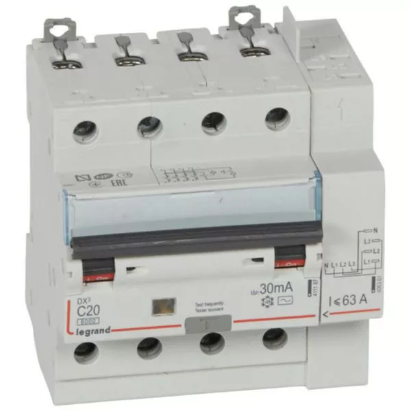 - Disjoncteur différentiel monobloc DX³ tétrapolaire 400V~ pouvoir de coupure :