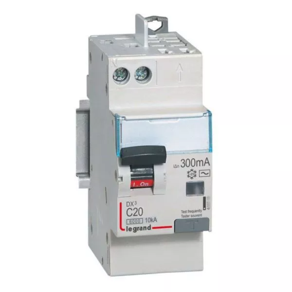 Disjoncteur différentiel monobloc DX³6000 10kA arrivée haute vis départ haut automatique U+N 230V~ - 20A - typeAC 300mA