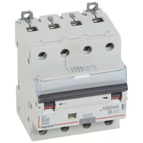 Disjoncteur différentiel monobloc DX³6000 arrivée haute départ bas à vis 4P 400V~ - 20A - typeAC 1000mA - courbe B