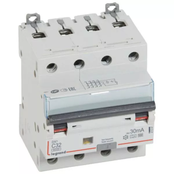 - Disjoncteur différentiel monobloc DX³ tétrapolaire 400V~ pouvoir de coupure :