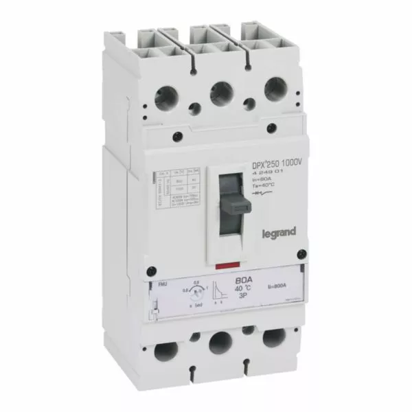 Disjoncteur DPX³ 250 1000V - 3P 80A - 20kA 1000V - Protection thermomagnétique ajustable