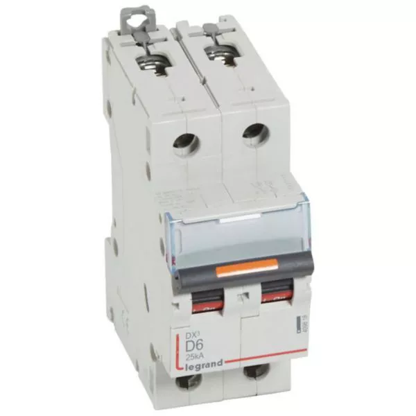 Disjoncteur DX³ 25kA arrivée haute et départ bas à vis 2P 230V~ à 400V~ - 6A - courbe D - 2 modules
