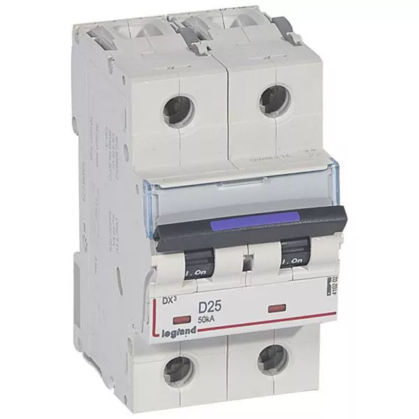 Disjoncteur DX³ 50kA arrivée haute et départ bas à vis 2P 230V~ à 400V~ - 25A - courbe D - 3 modules