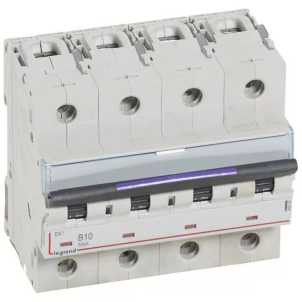 Disjoncteur DX³ 50kA arrivée haute et départ bas à vis 4P 400V~ - 10A - courbe B - 6 modules