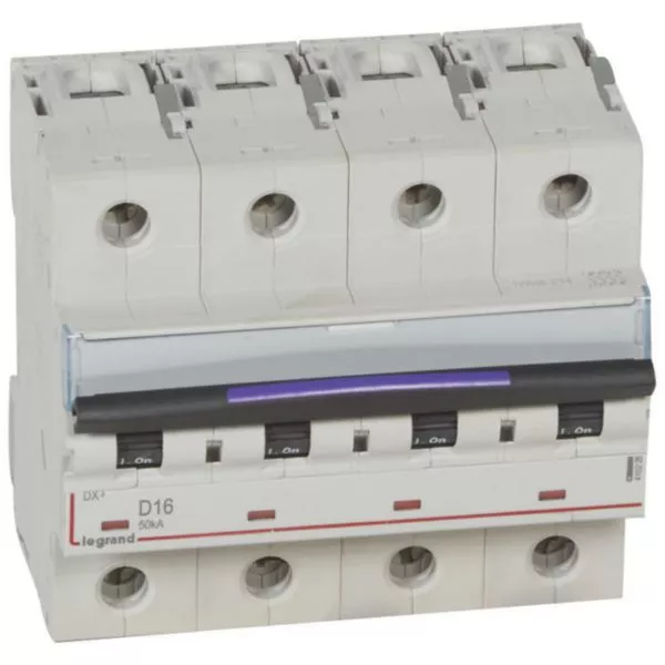 Disjoncteur DX³ 50kA arrivée haute et départ bas à vis 4P 400V~ - 16A - courbe D - 6 modules