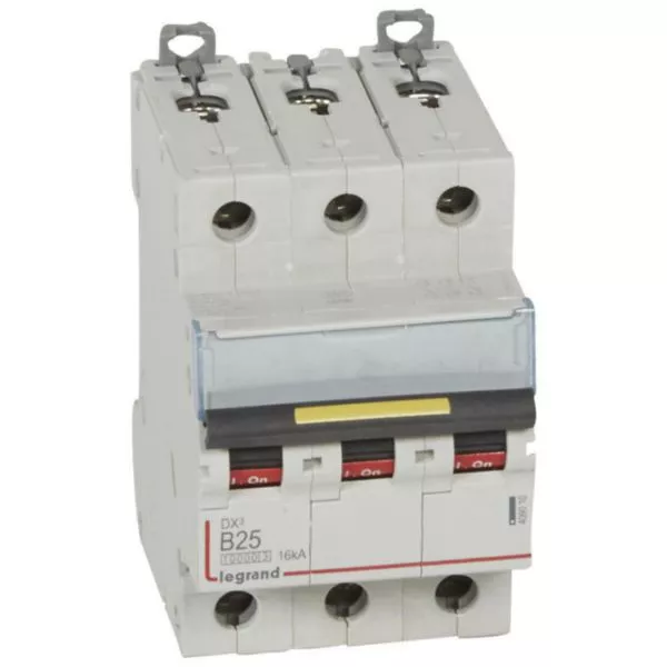 Disjoncteur DX³10000 16kA arrivée haute et départ bas à vis 3P 400V~ - 25A - courbe B - 3 modules