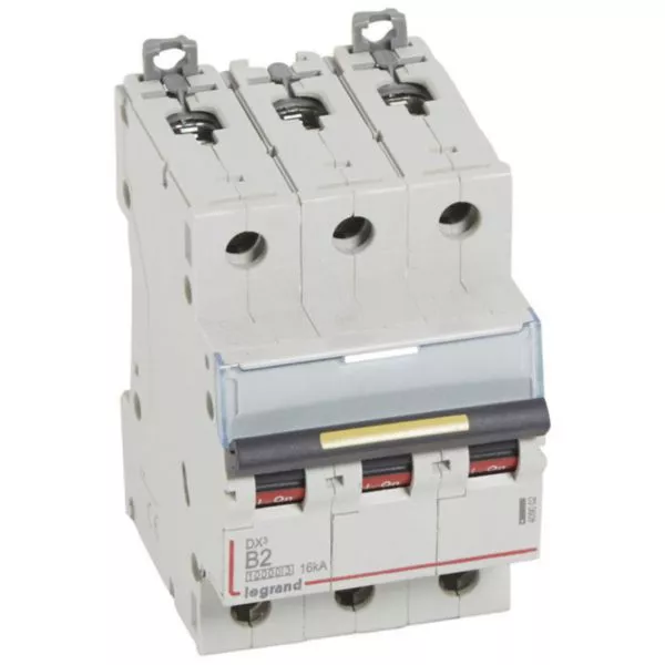 Disjoncteur DX³10000 16kA arrivée haute et départ bas à vis 3P 400V~ - 2A - courbe B - 3 modules