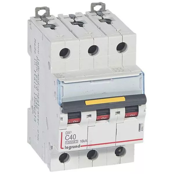 Disjoncteur DX³10000 16kA arrivée haute et départ bas à vis 3P - 400V~ - 40A - courbe C - 3 modules