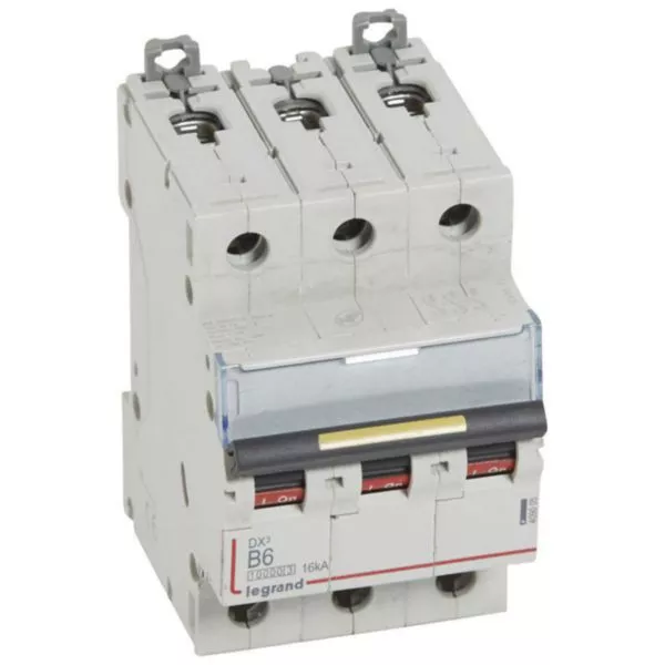 Disjoncteur DX³10000 16kA arrivée haute et départ bas à vis 3P 400V~ - 6A - courbe B - 3 modules