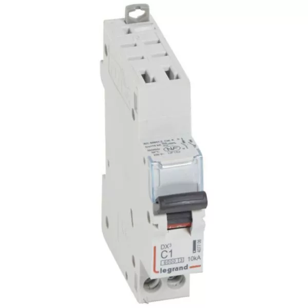 Disjoncteur DX³6000 10kA arrivée haute automatique et départ bas à vis U+N - 230V~ - 1A- courbe C - 1 module