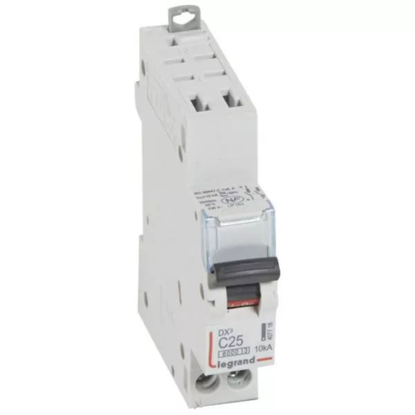 Disjoncteur DX³6000 10kA arrivée haute automatique et départ bas à vis U+N - 230V~ - 25A - courbe C - 1 module