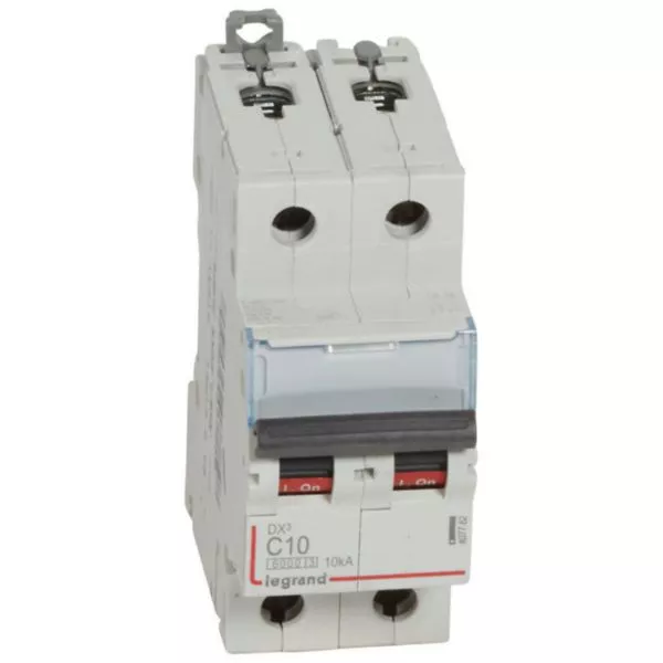 Disjoncteur DX³6000 10kA arrivée haute et départ bas à vis 2P 230V~ à 400V~ - 10A - courbe C - 2 modules