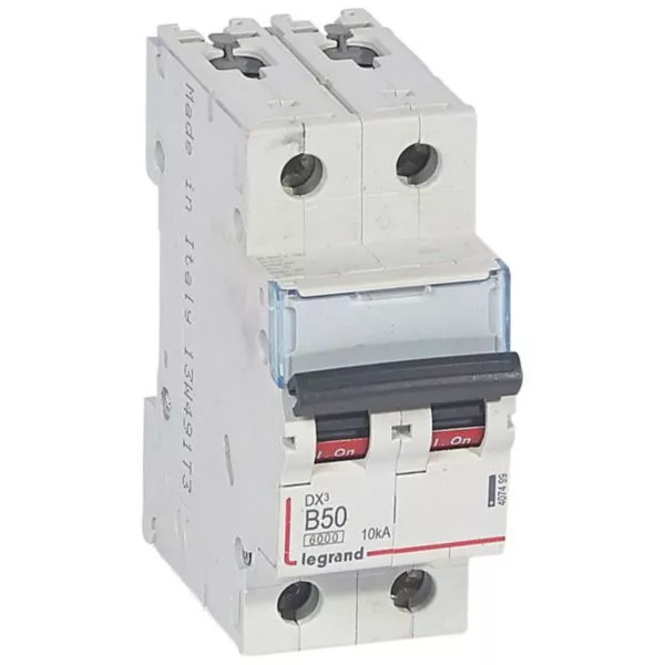 Disjoncteur DX³6000 10kA arrivée haute et départ bas à vis 2P 230V~ à 400V~ - 50A - courbe B - 2 modules
