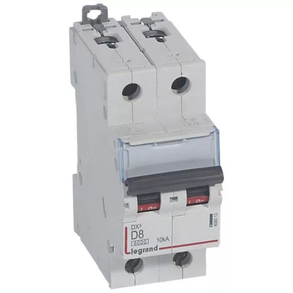 Disjoncteur DX³6000 10kA arrivée haute et départ bas à vis 2P 230V~ à 400V~ - 8A - courbe D - 2 modules