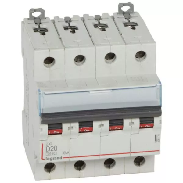Disjoncteur DX³6000 10kA arrivée haute et départ bas à vis 4P 400~ - 20A - courbe D - pour peigne HX³ traditionnel