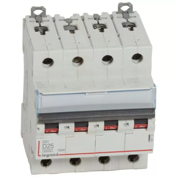 Disjoncteur DX³6000 10kA arrivée haute et départ bas à vis 4P 400~ - 25A - courbe D - pour peigne HX³ traditionnel