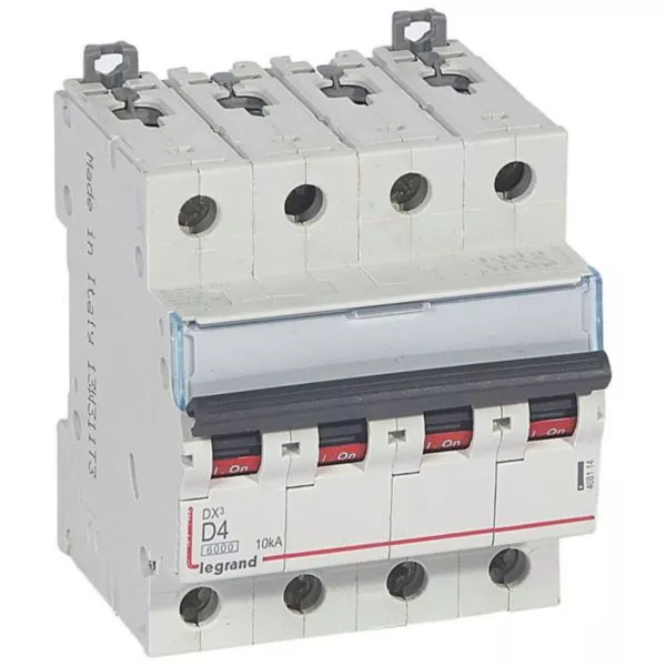 Disjoncteur DX³6000 10kA arrivée haute et départ bas à vis 4P 400~ - 4A - courbe D - pour peigne HX³ traditionnel