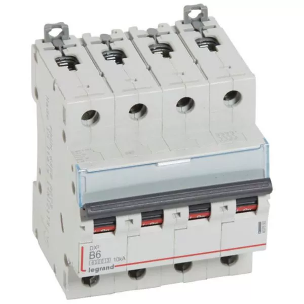 Disjoncteur DX³6000 10kA arrivée haute et départ bas à vis 4P 400V~ - 6A - courbe B - 4 modules