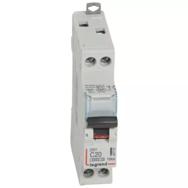 Disjoncteur DX³6000 10kA arrivée haute et départ bas à vis U+N 230V~ - 20A - courbe C - 1 module
