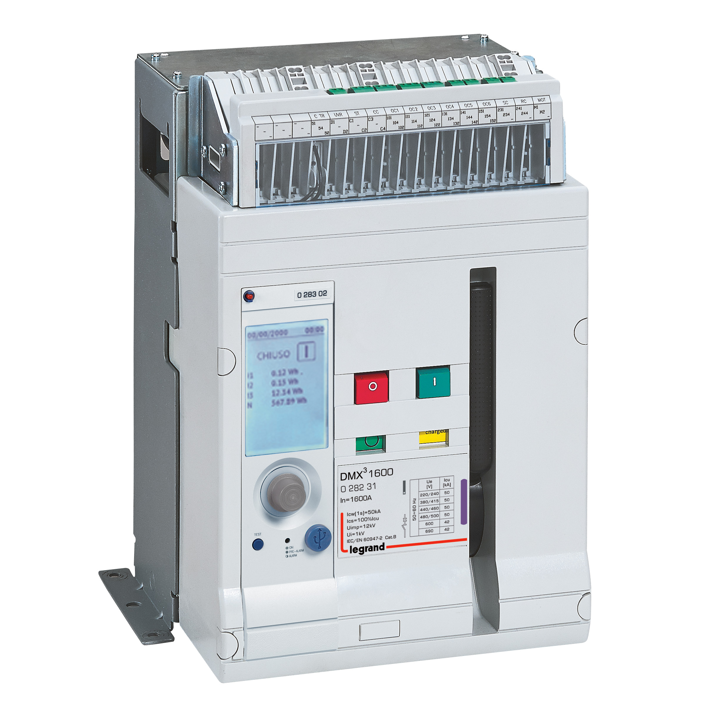 Les disjoncteurs ouverts DMX³ permettent la protection et le contrôle en tête des installations basse tension de 630A à 6300A. Les interrupteurs ouverts DMX³-I permettent la coupure en charge et le sectionnement des circuits à basse tension de 1000A à 6300A. Ces appareils de protection de puissance sont disponibles en version fixe ou débrochable et peuvent être équipés de mécanismes d'interverrouillage pour inverseurs de sources. Ils peuvent être complétés par des auxiliaires de type déclencheurs de courant, commandes motorisées, verrouillage, prises avant ou arrière, épanouisseurs. Les unités de protection électroniques permettent des réglages précis des paramètres de protection et doivent être commandées en même temps que le DMX³ pour un assemblage usine. Le DMX³ 1600 dispose d'une version complète pré-équipée avec une unité de protection. Les unités de protection peuvent être réglées directement sur écran ou en assocation avec un dongle Bluetooth, le réglage des paramètres peut s'effectuer via une App.