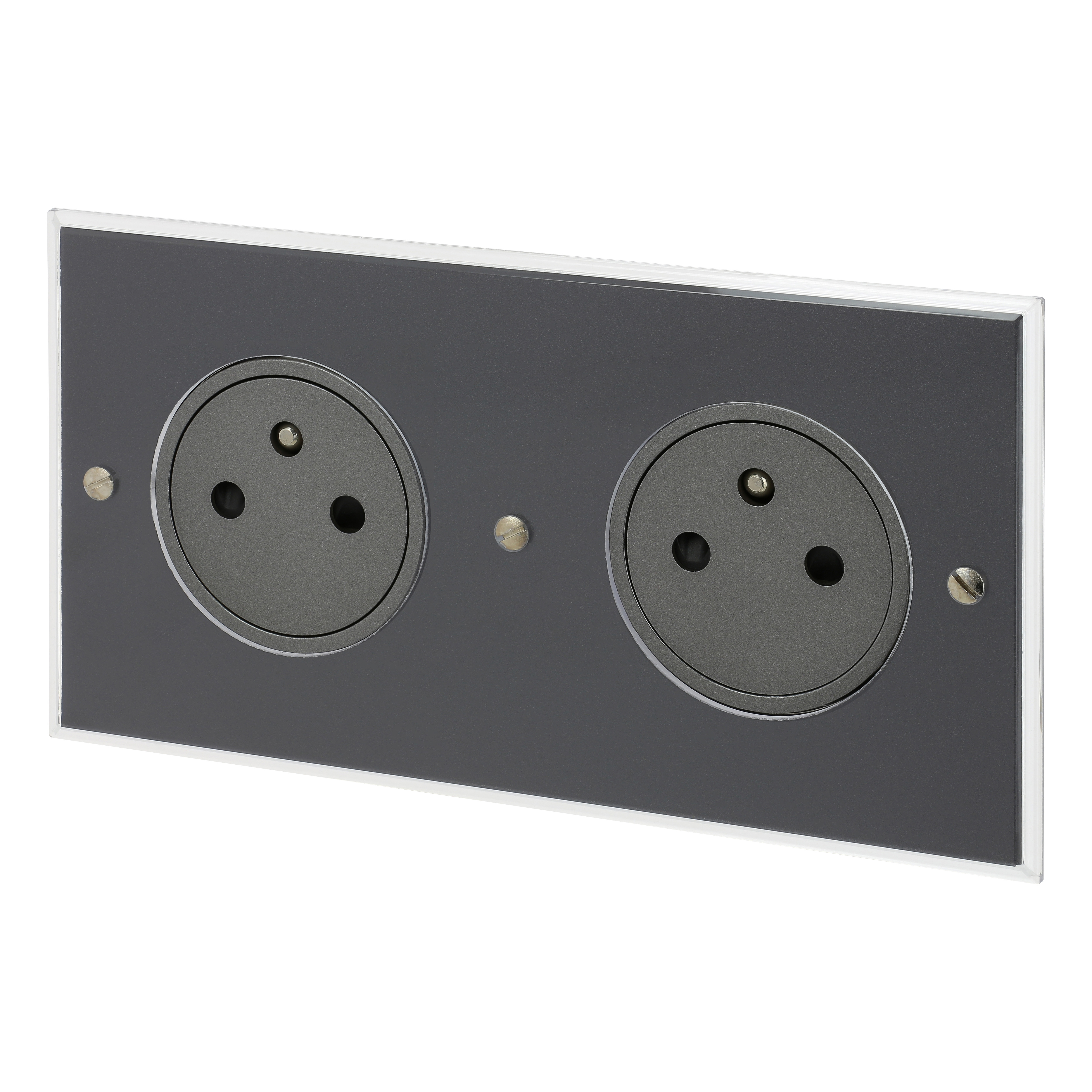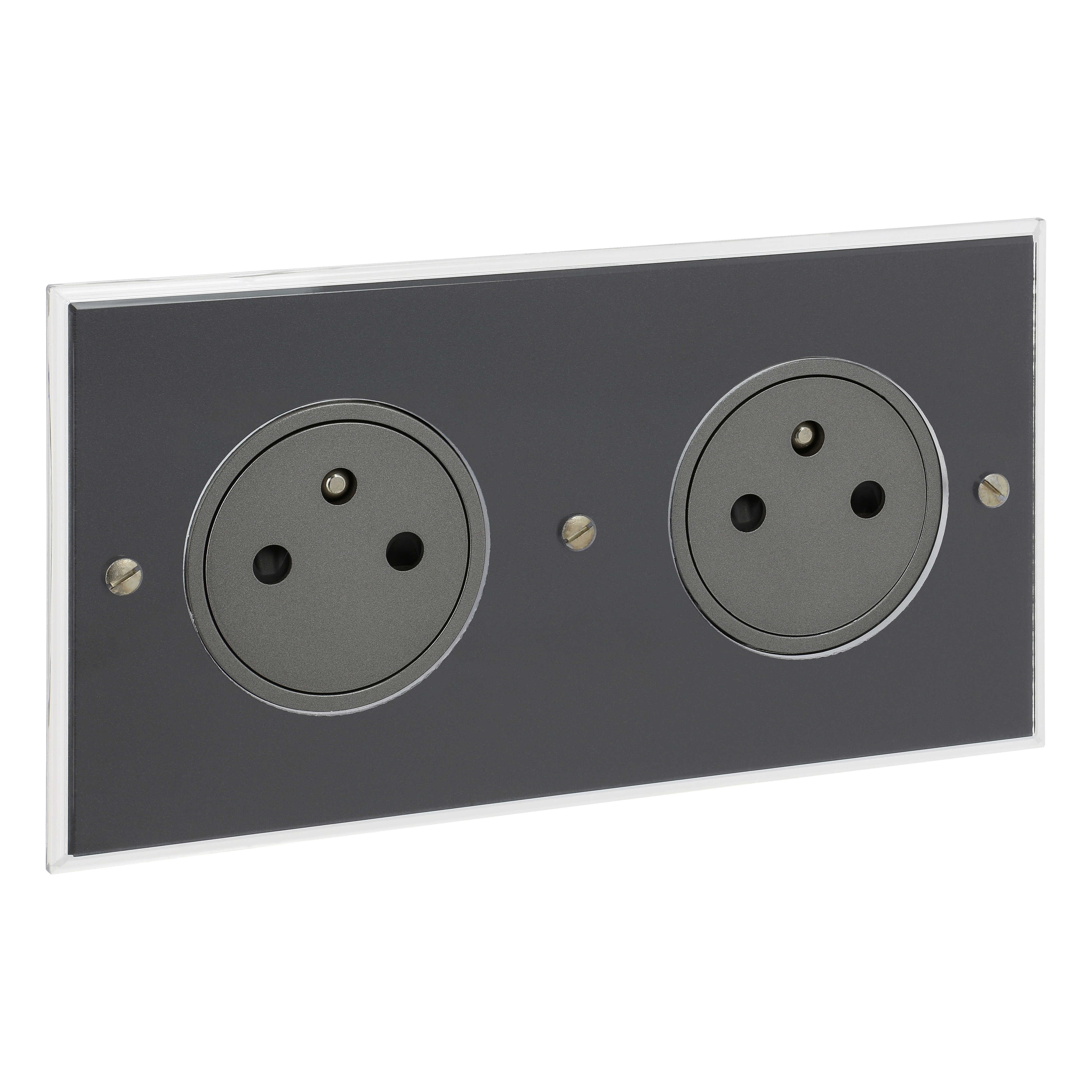 Double Prise de courant 2P+T 2 Postes Mémoire finition Cristal Art d'Arnould