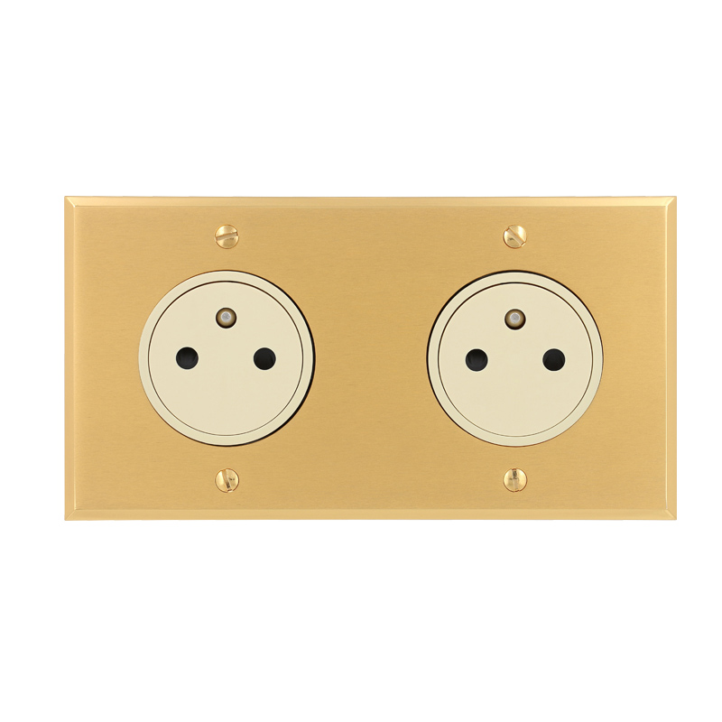 Double Prise de courant 2P+T 2 Postes Mémoire finition Or Brossé Art d'Arnould
