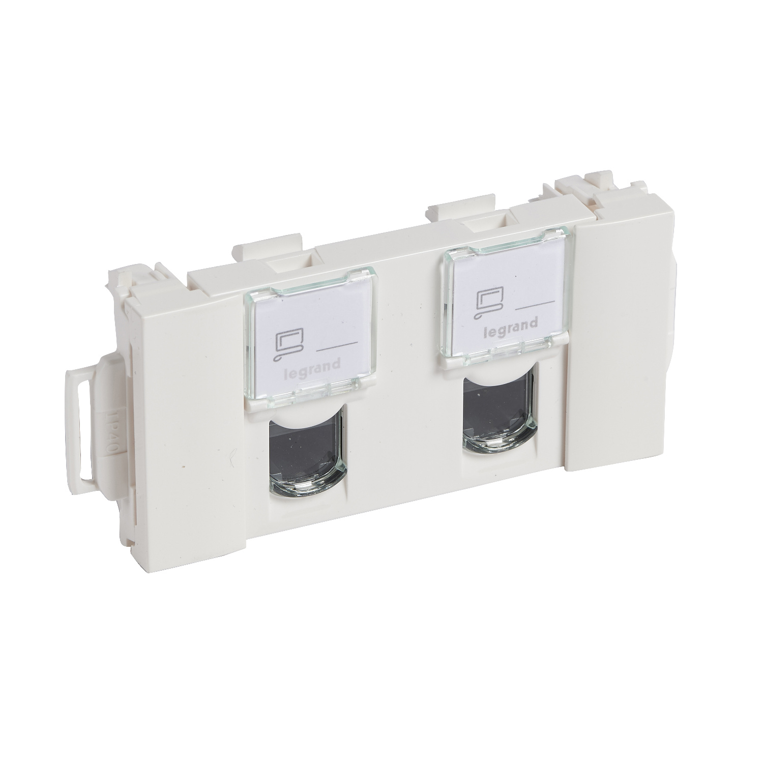 Double prise RJ45 Mosaic 6A STP goulotte clippage direct cat. 6 FTP 3 modules - Blanc
