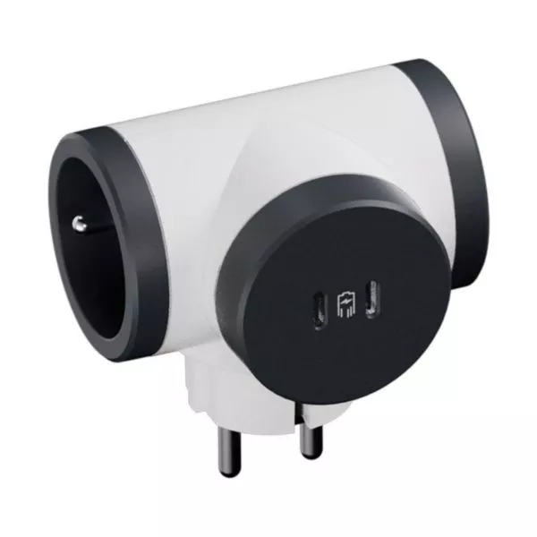 Fiche multiprise pour un usage quotidien, avec des prises orientées pour faciliter le branchement des appareils